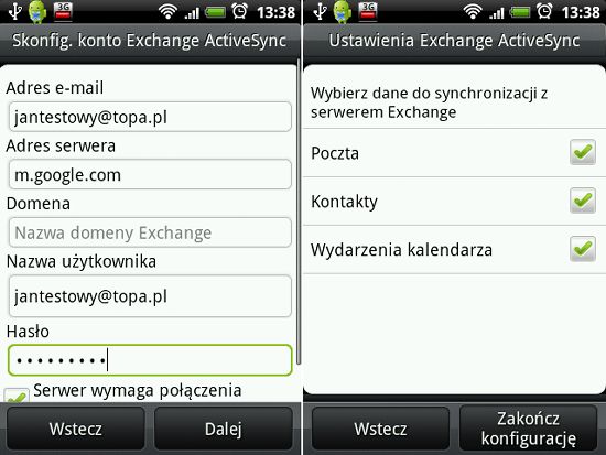 Android: Synchronizacja poczty, kontaktów i kalendarza z Google Apps