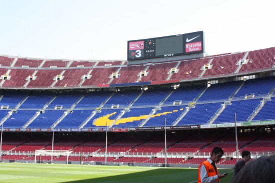 29 kwietnia 2010 wybrałem się na zwiedzanie stadionu FC Barcelony – Camp Nou. Nie udało się wkręcić dzień wcześniej na mecz Ligi Mistrzów, ale nawet przejście po pustym stadionie robi wrażenie.
