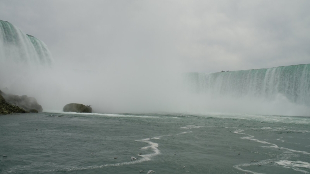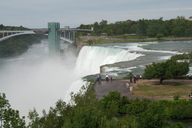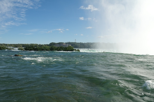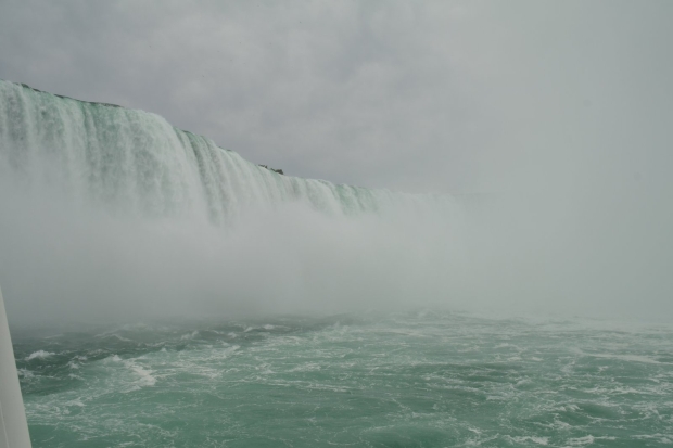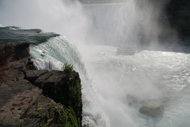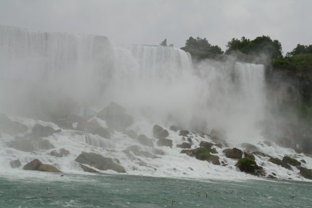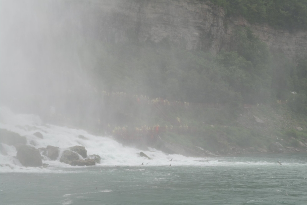 Niagara Falls, strona amerykańska. Wybraliśmy się oczywiście na wycieczkę statkiem (Maid of the Mist), który podpływa bardzo blisko wodospadów. Foliowe płaszcze się przydają :)