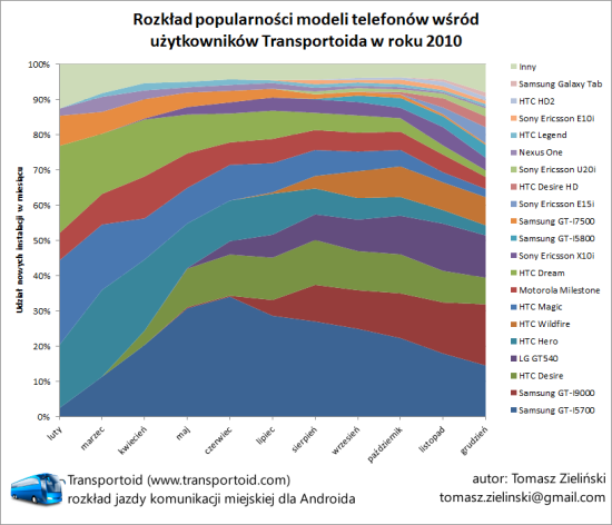 Prawie 60% użytkowników Transportoida posiada jeden z pięciu poniższych telefonów:
