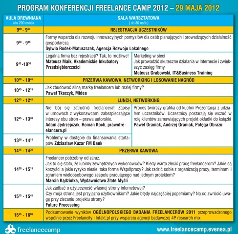 Szczegóły oraz rejestracja na konferencję możliwa na stronie wydarzenia: www.freelancecamp.evenea.pl – koszt uczestnictwa w samej konferencji to tylko 49 zł.
