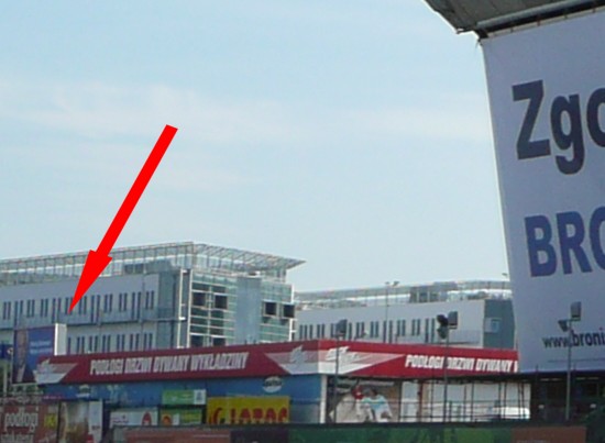Jeszcze ciekawostka wypatrzona na zdjęciu. 20 metrów dalej stoi „billboardzik” Olechowskiego. Różnica wielkości widoczna gołym okiem.