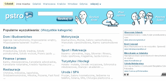…uzupełnione. Serwis startuje z bazą zawierającą całkiem pokaźną liczbą dodanych już firm w największych miastach. W jednym z wcześniejszych wpisów marudziłem na serwisy, które startują zupełnie puste. Pstro.pl się tu bardzo pozytywnie wyróżnia.