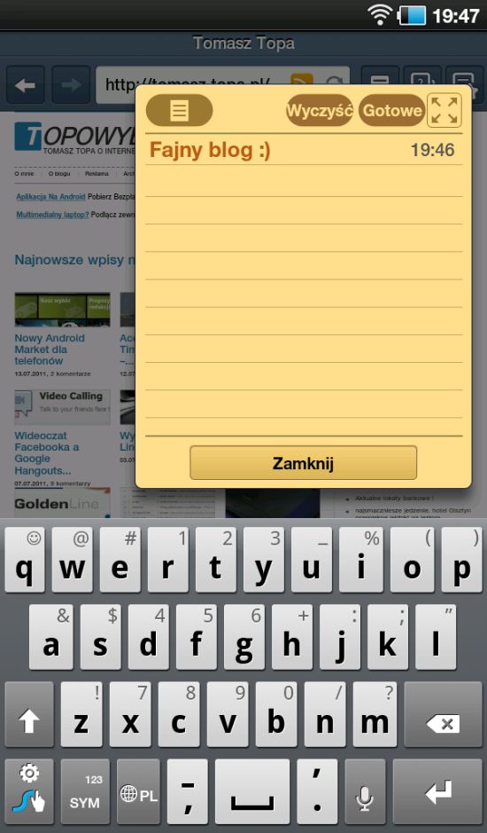 Tu chyba jest największa różnica w stosunku do konkurencyjnych tabletów: Samsung mógł sobie pozwolić na lepsze dopracowanie oprogramowania. Dopasowano przeglądarkę (z fajnym bajerem w postaci notatek), pasek powiadomień został wzbogacony o dodatkowe przełączniki itd. No i przede wszystkim preinstalowany Swype. Do tego ten kalendarz, czytnik e-booków, soft do muzyki czy preinstalowany manager plików (dlaczego na innych urządzeniach tak rzadko można spotkać taki soft?) itd.