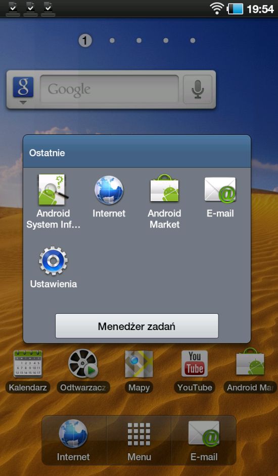 Całkiem nieźle wypada też ekran o wyższej rozdzielczości niż w innych urządzeniach tego rozmiaru. Zamiast typowych 800 x 480 jest 1024 x 600 znane z netbooków. Chociaż jest to zwykły LCD TFT, a nie AMOLED, kolory są bardzo dobre, a jasność podświetlenia odpowiednia.