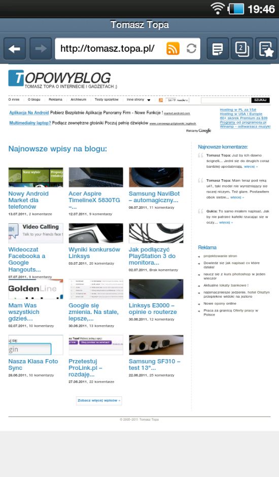No i minusik: wciąż tylko Android 2.2.1. Model WiFi only został wydany w pół roku po premierze oryginału, mógłby mieć już na pokładzie Gingerbreada… Model dla sieci Sprint dostał aktualizację do 2.3.4, a o niebrandowanych tradycyjnie zapomniano.