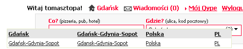 Serwis notuje mały plusik, drobiazg który się rzuca w oczy człowiekowi mieszkającemu w Gdańsku: w wyszukiwarce przy lokalizacji pojawia się mała strzałeczka, która pozwala wybrać również poszerzyć zakres wyszukiwania do całego Trójmiasta (Gdańsk-Sopot-Gdynia).
