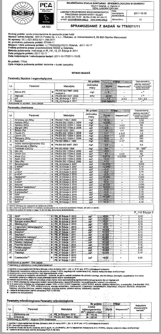 Woda w Gdańsku jest generalnie bardzo dobrej jakości i byłem przekonany, że wyniki będą raczej dobre. Moja woda nie ma nieprzyjemnego zapachu ani smaku, nigdy też nie pojawiały się żadne problemy z innymi pływającymi tam ustrojstwami. Potwierdzają to wyniki badania wody otrzymane od wojewódzkiej stacji sanitarno-epidemiologicznej (publikuję na osobnej podstronie). Mogę więc