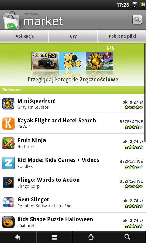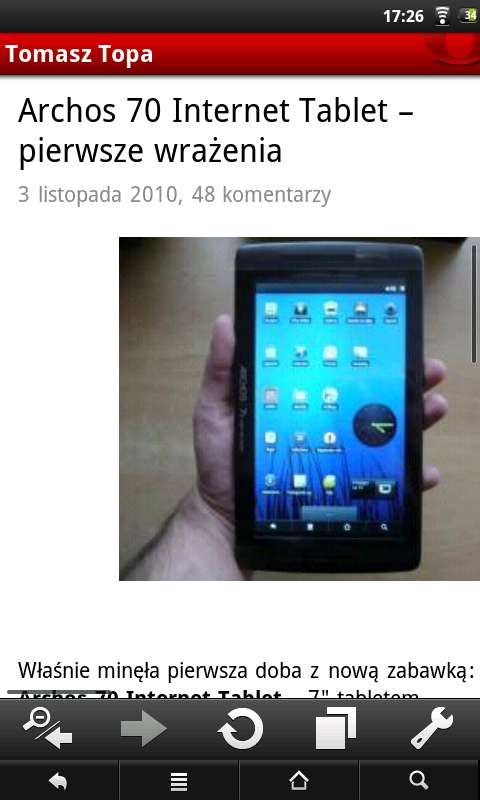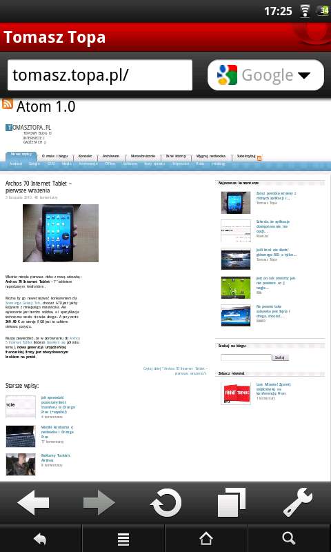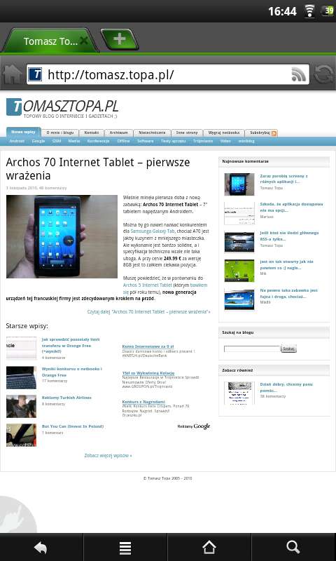 Screeny z różnych aplikacji uruchomionych na Archos 70 Internet Tablet. Rozmiar oryginalny, JPEG@60%