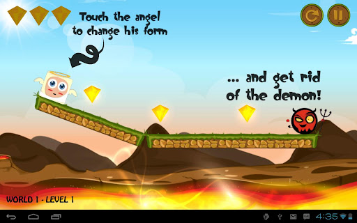 Odwieczna walka dobra ze złem to motyw przewodni gry Heaven & Hell, tu w formie okrągłych lub kanciastych aniołków i diabełków. Ot kolejna gra logiczna z ładną grafiką.